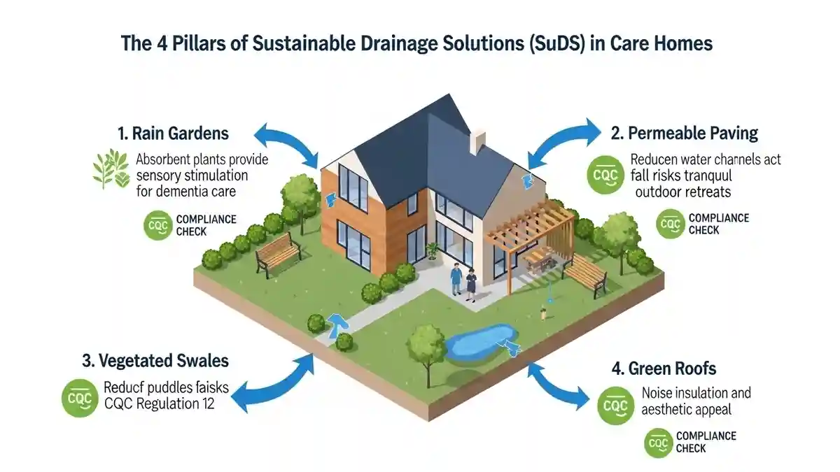 The future of sustainable drainage solutions CQC care home design is the integration of SuDS (Sustainable Drainage Systems). In Chinnor, Policy EN18 of the Local Plan encourages SuDS to manage surface water runoff, which often plagues the surrounding area.